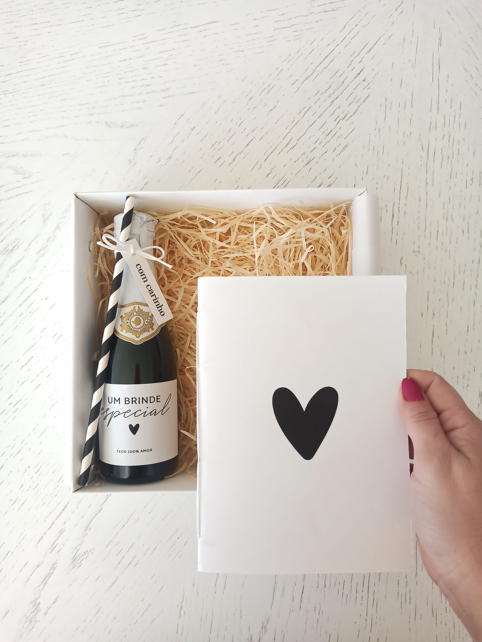 Com a caixa Brinde Especial você vai arrasar no presente! Ela é perfeita par presentear em qualquer ocasião. Inclui um mini espumante e uma caderneta artesanal A5 sem pauta.