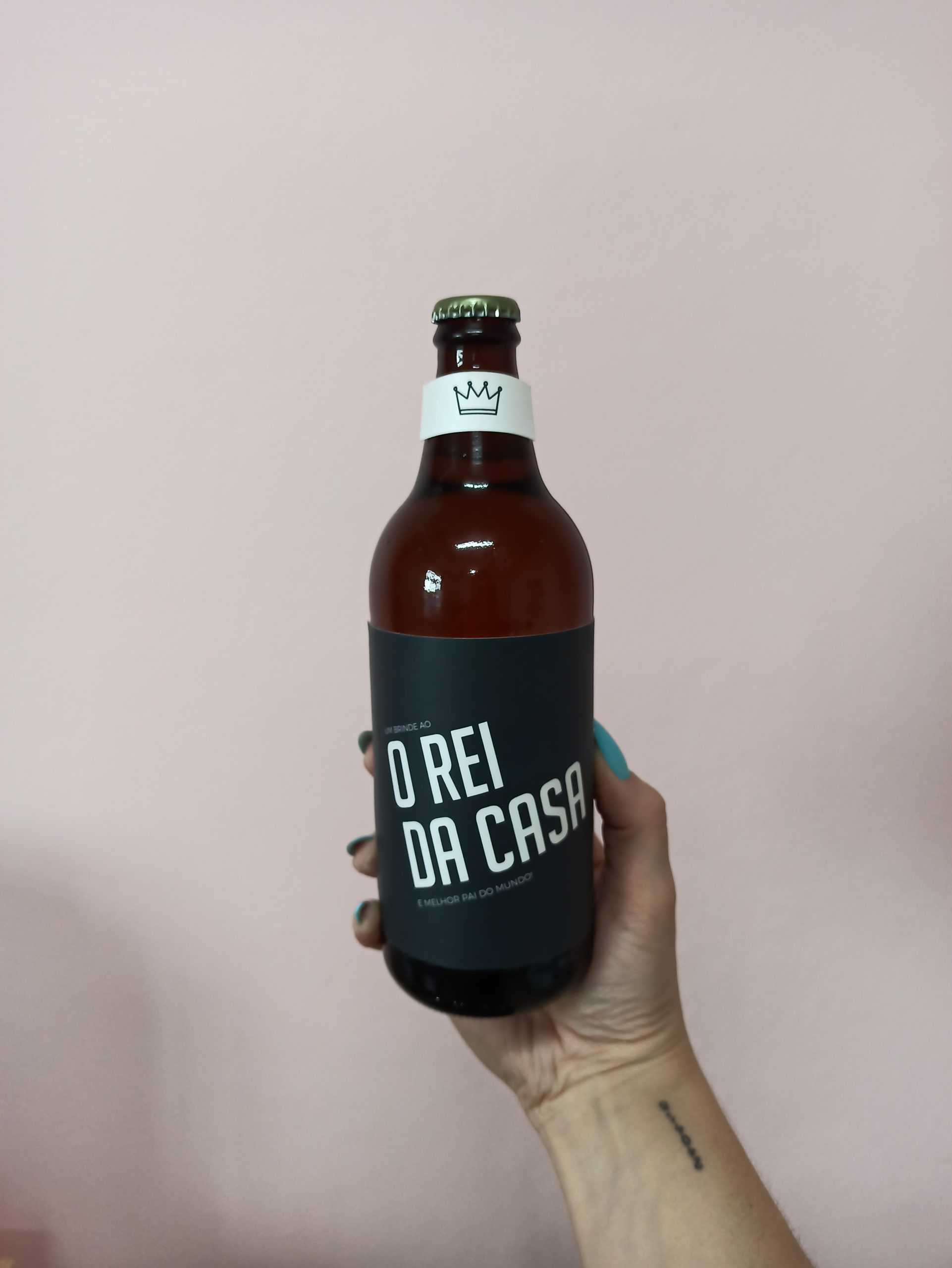 Cerveja premium lager personalizada com adesivo e embalagem de papel customizados. Perfeito para Dia dos Pais ou brinde corporativo! Entrega em todo o Brasil. 🍺👑