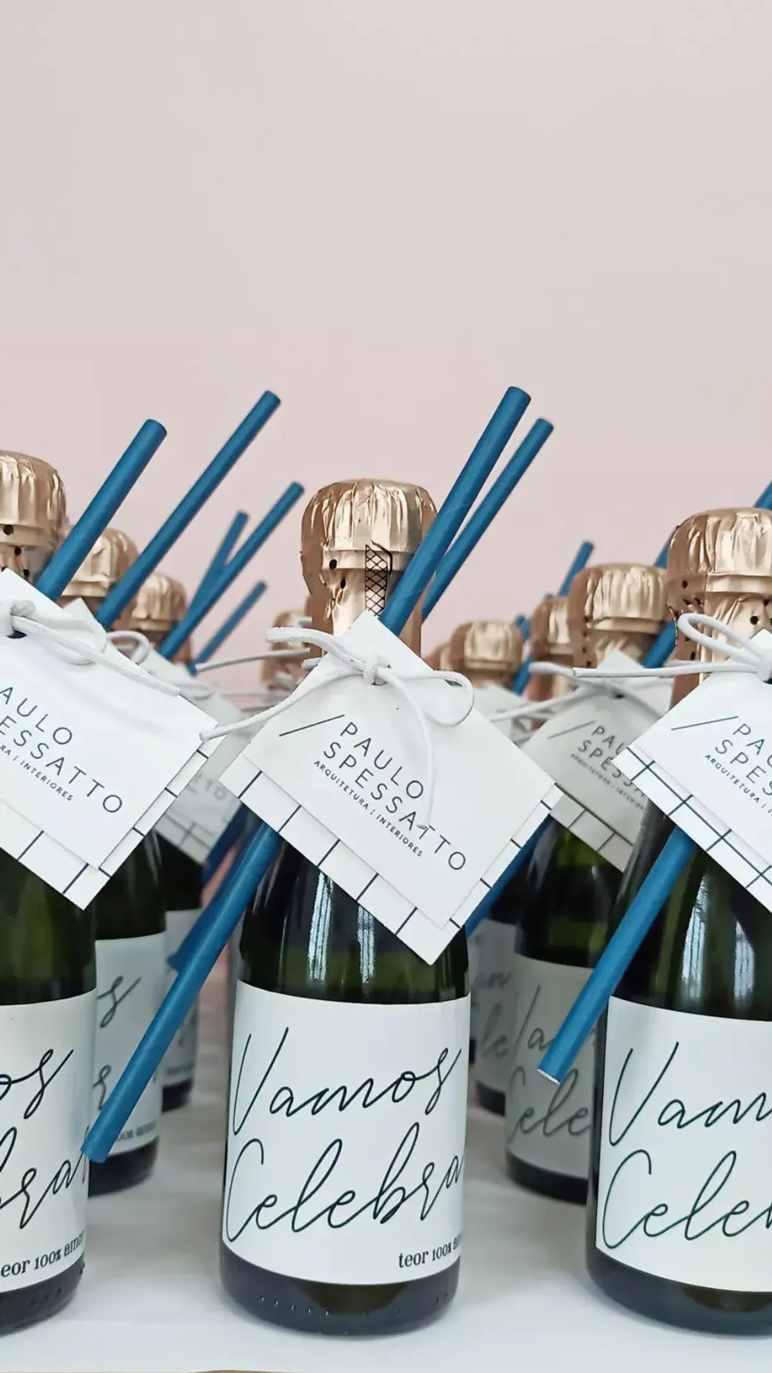 Às vezes o brinde mais certeiro é aquele que cabe em qualquer comemoração — e que leva o nome da sua empresa com elegância. O mini espumante personalizado é prático, versátil e garante aquele momento de celebração que toda data merece.