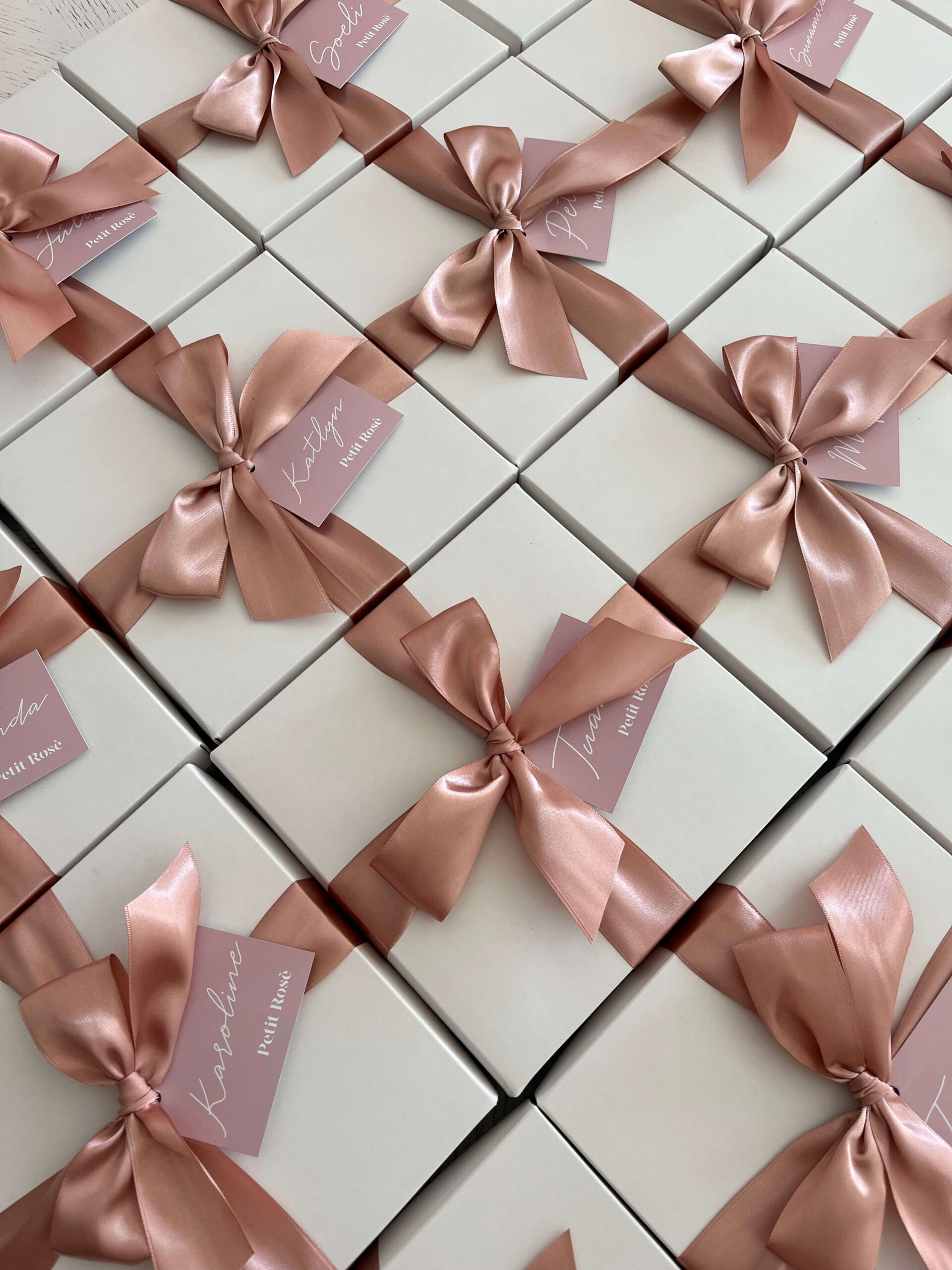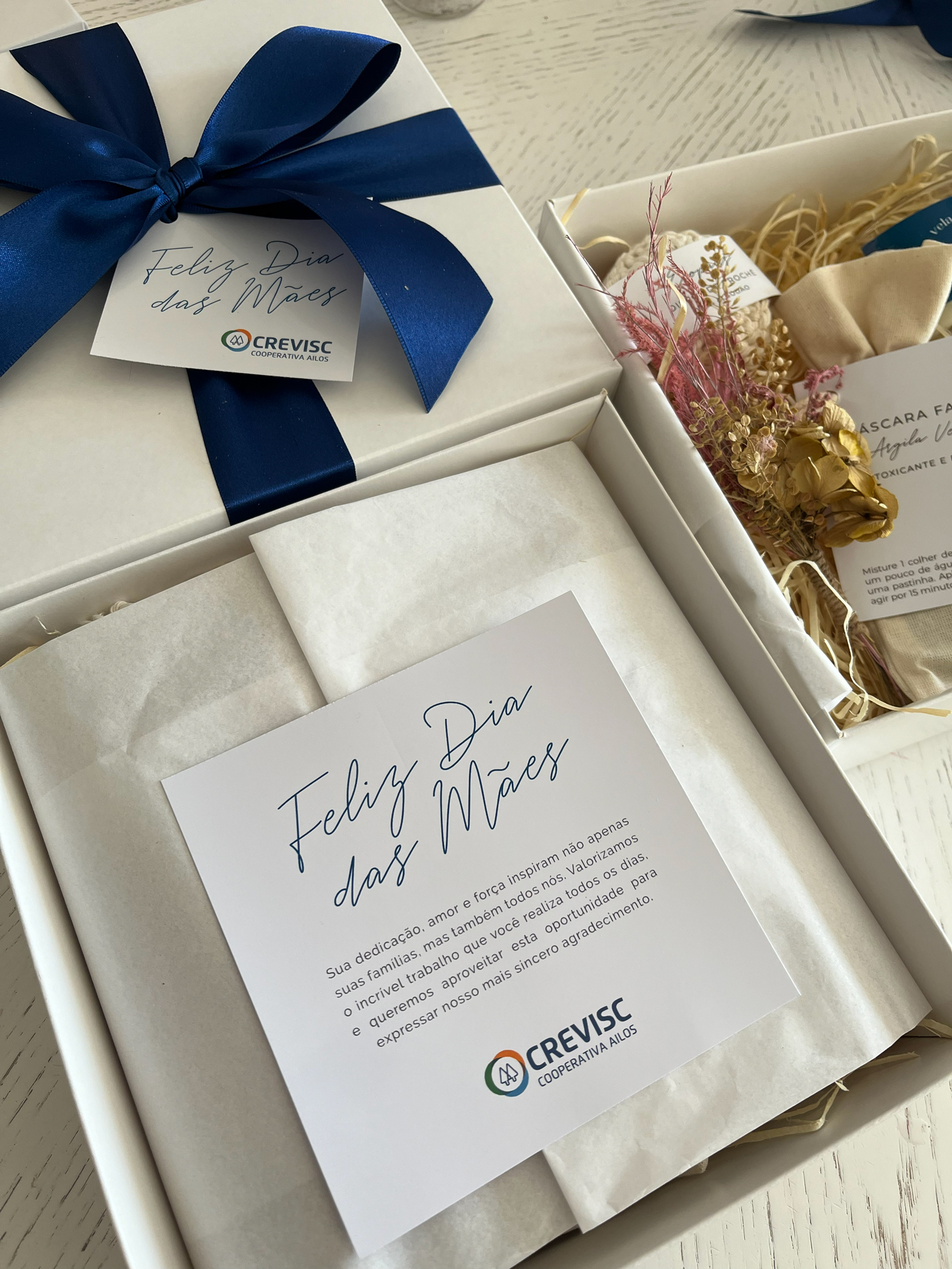 - Embalagem com laço, tag e cartão mensagem