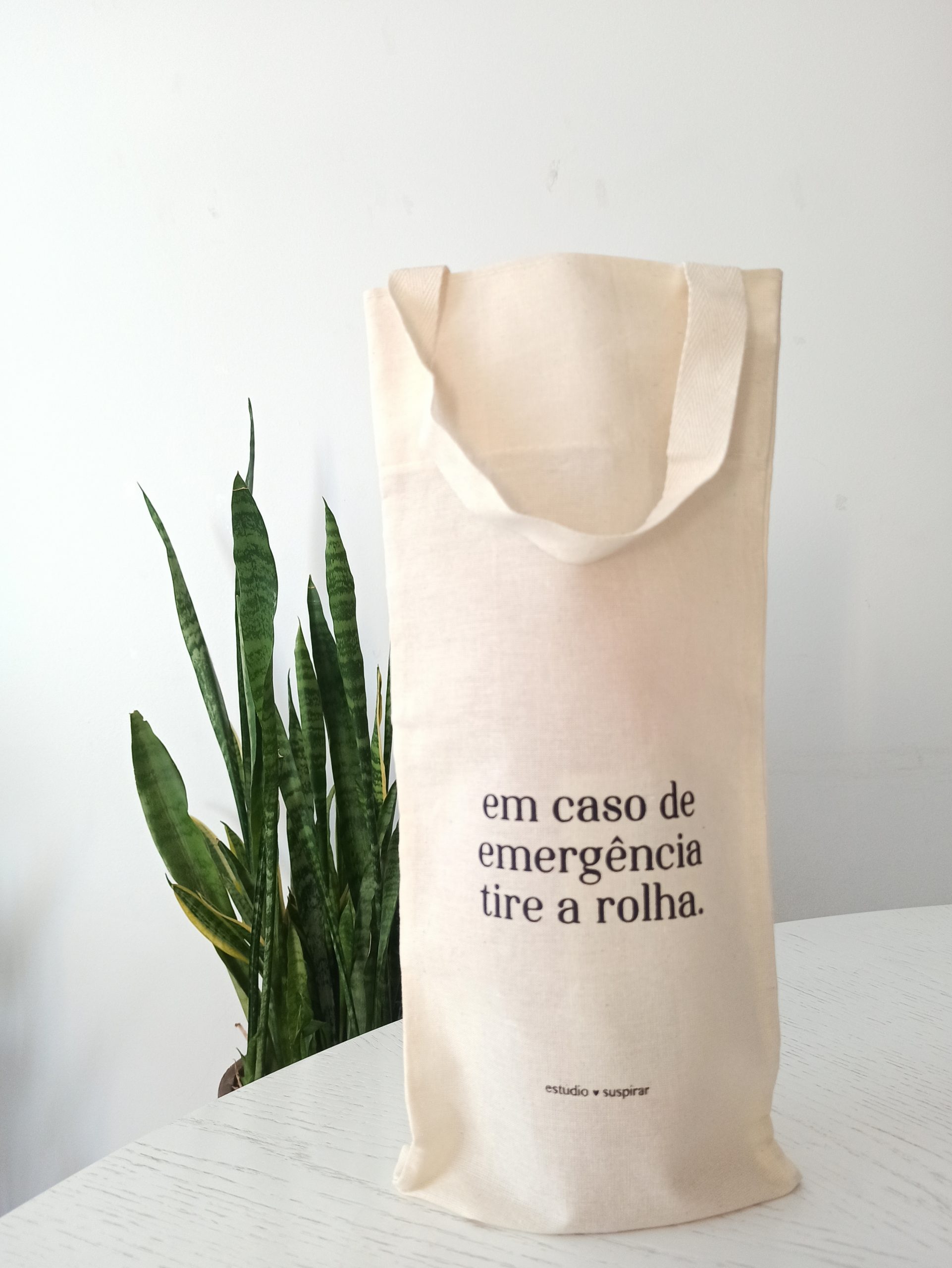 A Sacola para Vinho “Em caso de emergência tire a rolha” é ideal para quem deseja presentear com bebidas em datas especiais ou usar no dia a dia. Mais praticidade para levar seu vinho em encontros com amigos, familiares ou happy hour. Não acompanha o vinho.
