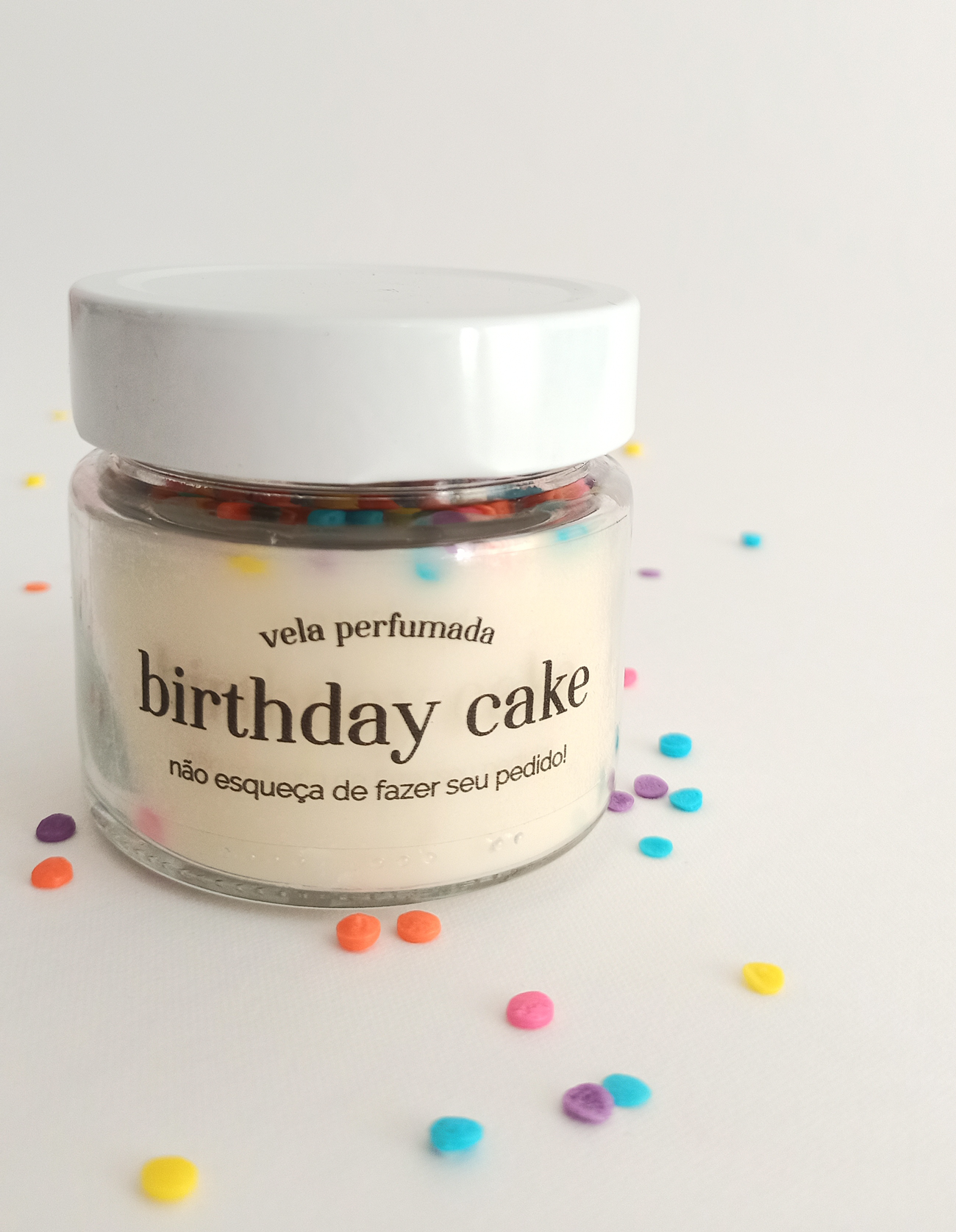 O jeito mais divertido e perfumado de desejar Feliz Aniversário para alguém especial! Nossa vela perfumada Birthday Cake foi inspirada no bolo de aniversário, com aroma doce e delicioso do tradicional do pão de ló de baunilha e recheio de doce de leite.